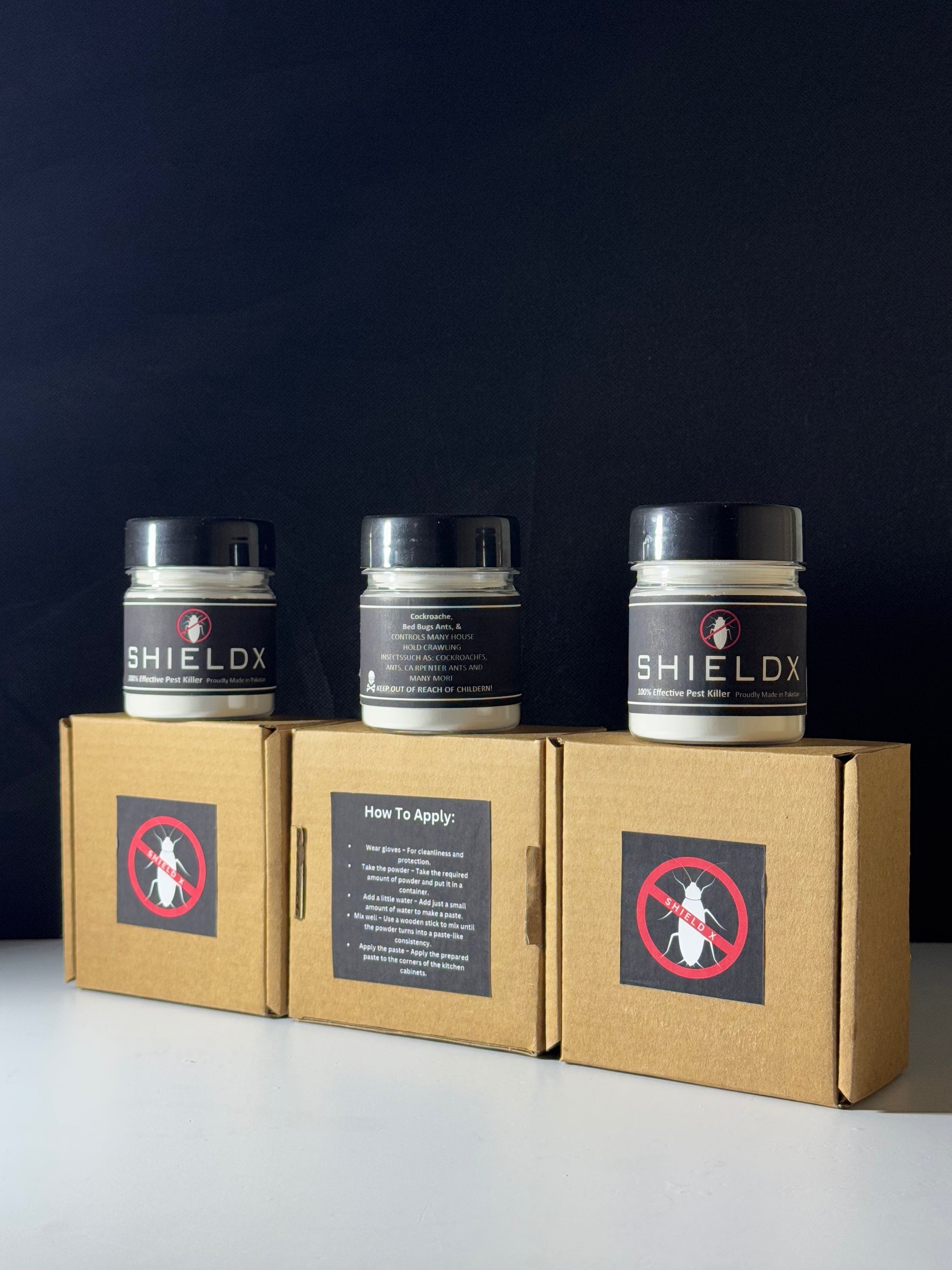 Shield-X™ is a powerful and effective pest control solution designed to eliminate cockroaches and other pests quickly and efficiently. Its advanced formula targets pests on contact, providing long-lasting protection for your home or business. Safe for indoor use and easy to apply, Shield-X™ is the ultimate defense against infestations, ensuring a pest-free environment for you and your family.